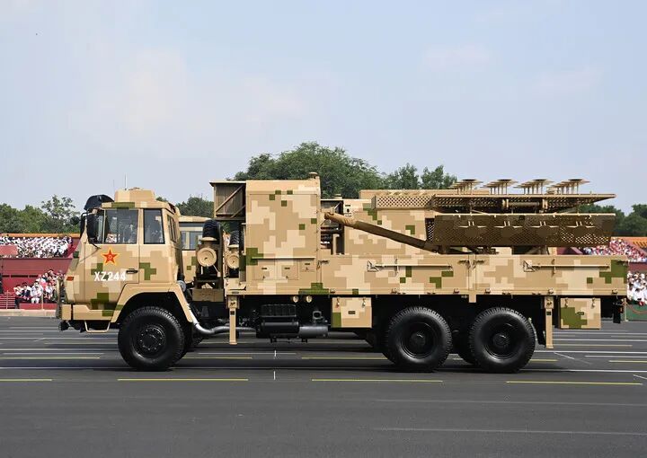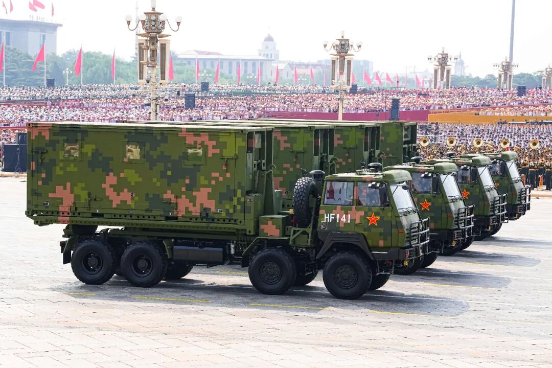 这是电子对抗方队接受检阅。新华社记者 范培珅 摄