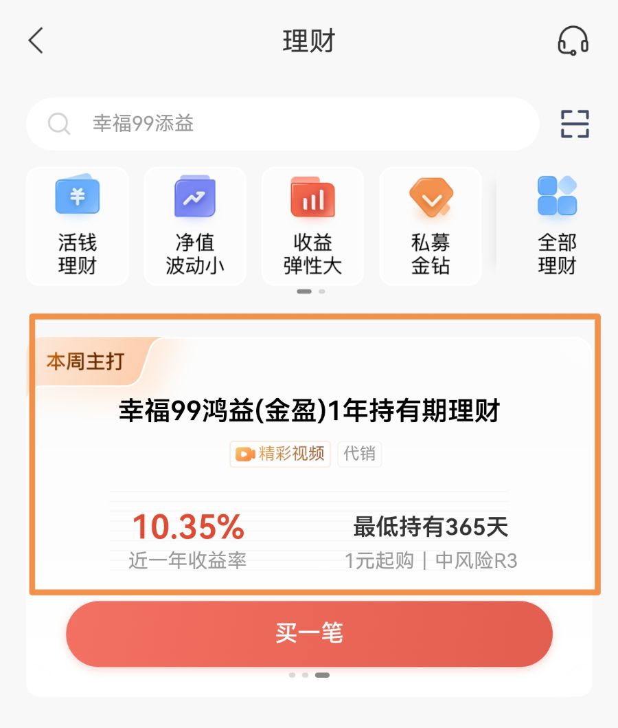 理财通评评“理”第49期继续测评银行热销产品,本期测评杭州银行APP“本周主打”产品:幸福99鸿益(金盈)1年持有期理财。