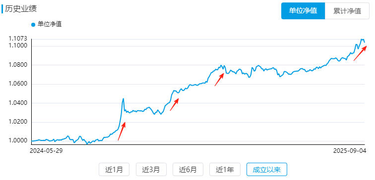 从收益表现来看,作为一款“固收+”产品,这款产品收益表现颇为亮眼,成立以来年化收益率达8.18%,近3个月收益表现也不错,年化后11.98%,但近半年收益表现略逊色,近6个月年化收益率5.78%。