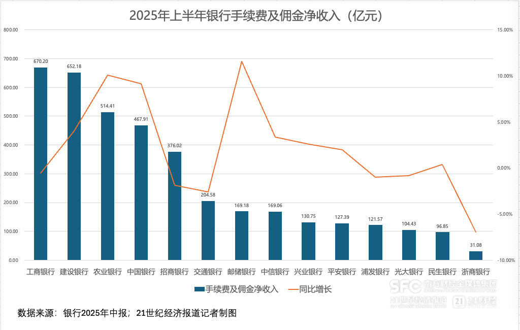21世纪经济报道记者根据2025年中报统计发现,目前在国有银行和股份制银行中,有三家银行的零售业务的营收占比超过50%,分别为邮储银行(65.15%)、招商银行(56.59%)、农业银行(51.40%)。对比来看,以对公见长的银行中该指标多在40%以下。