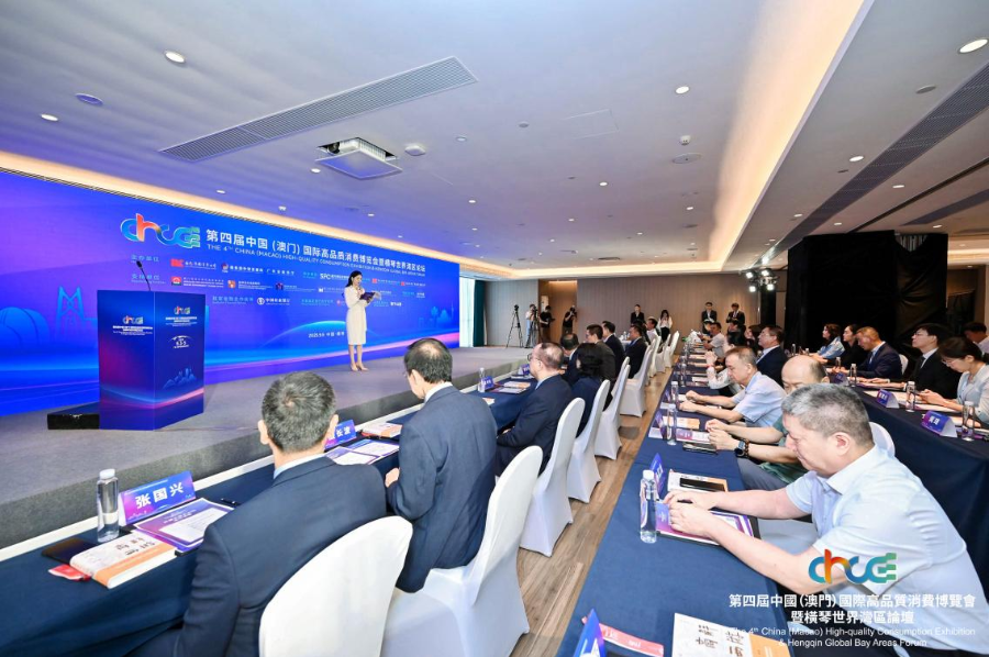 9月5日上午,第四届中国(澳门)国际高品质消费博览会暨横琴世界湾区论坛(简称“高品会”)之开幕式暨主论坛在横琴开幕。现场,来自政企各界的近200位嘉宾代表齐聚一堂,为推动粤港澳大湾区建设、赋能澳门经济适度多元发展建言献策。