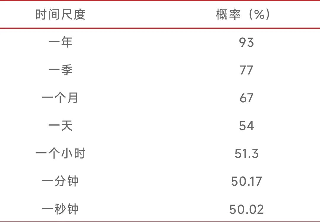 这个牙医很会投资,年化收益率能达到15%。然而,根据不同的时间尺度,他的赚钱概率会截然不同。