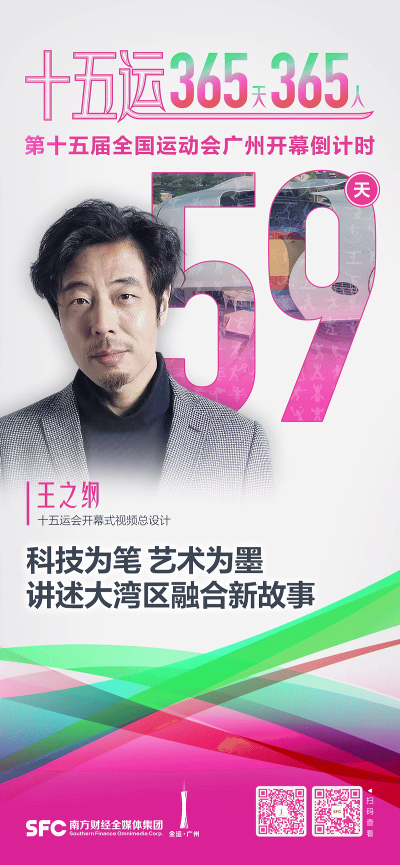 还有59天,第十五届全国运动会将在粤港澳三地举行。作为开幕式的视频总设计,王之纲正带领团队进行最后的冲刺。