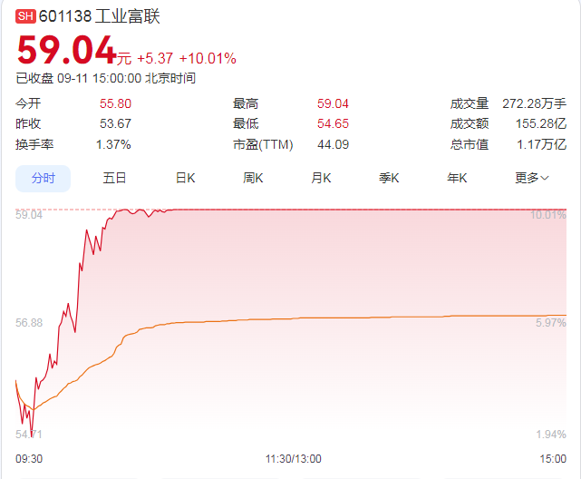 9月11日,工业富联触及涨停,创历史新高,总市值超1.17万亿元。据了解,工业富联强势涨停,与苹果发新机有一定关系。9月10日凌晨,苹果举行2025秋季发布会,其新品iPhone Air被称为“史上最薄”的iPhone。