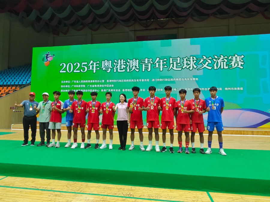9月16日上午,以“绿茵筑梦,接力全运”为主题的2025年粤港澳青年足球交流赛圆满结束,各奖项归属尘埃落定。冠军球队为广东龙门队,亚军球队是香港董之英队,季军球队由兴宁齐昌队获得;梅州齐昌中学朱政毅斩获“优秀射手奖”;广州培正队、澳门代表队、香港九龙队荣获“球队优胜奖”。