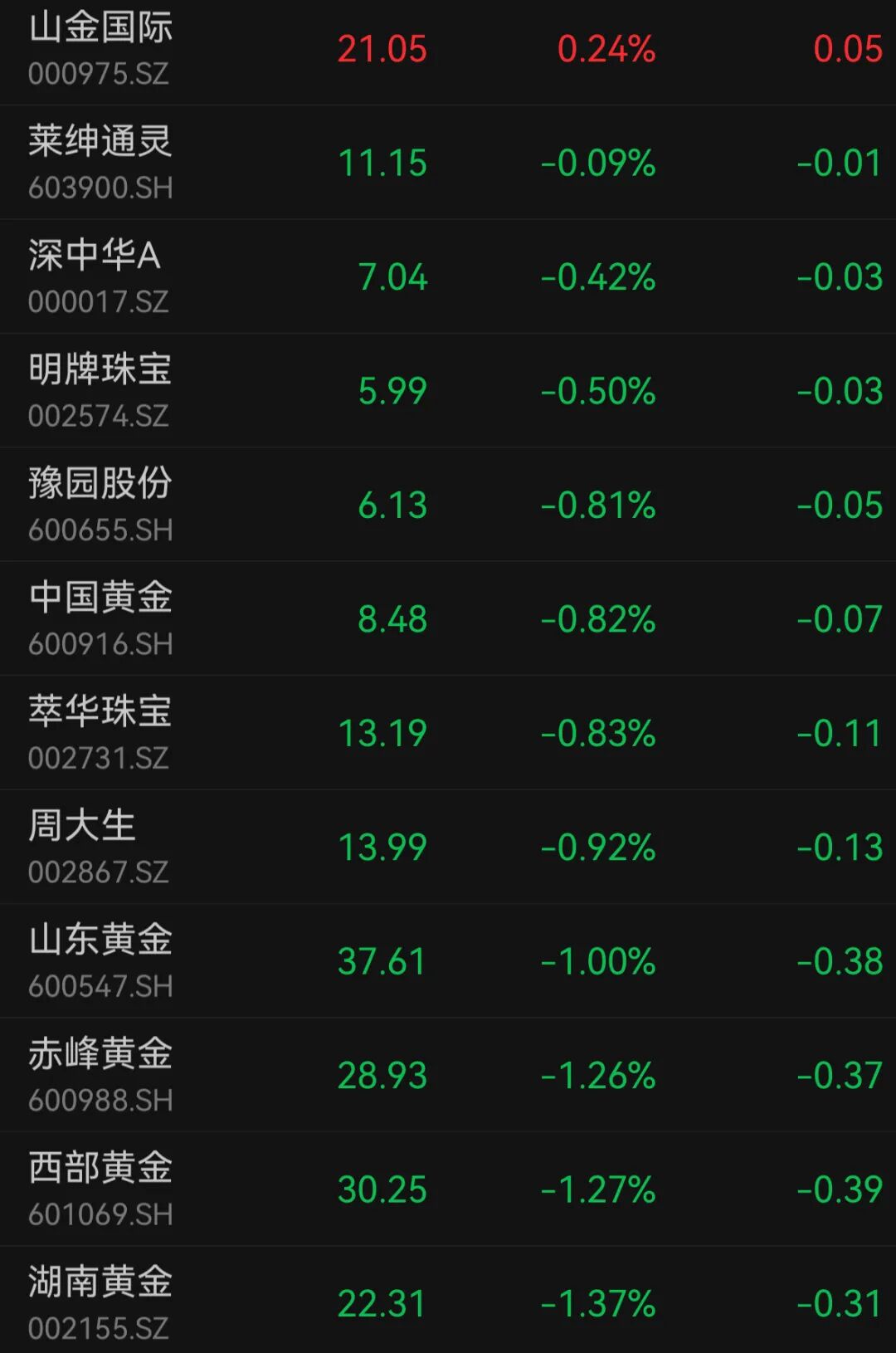 黄金珠宝板块走低
