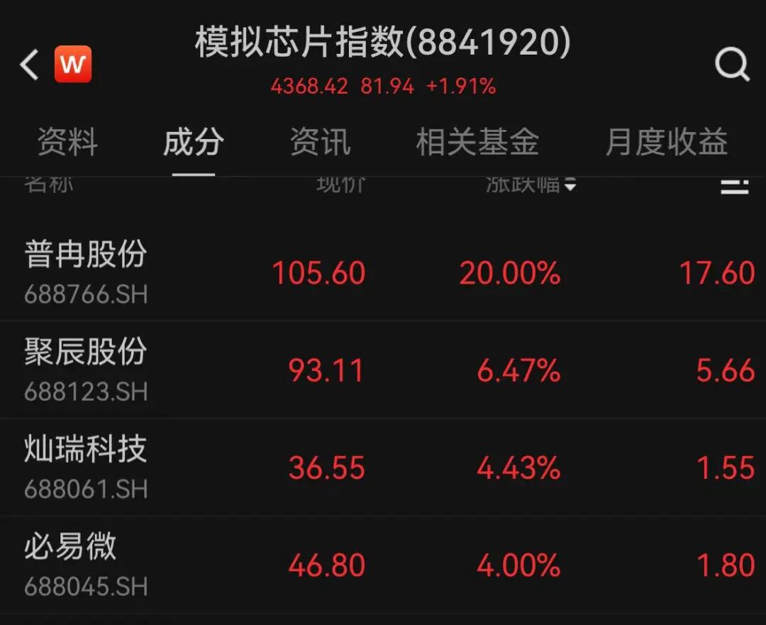 模拟芯片指数涨近2%,多股大涨。