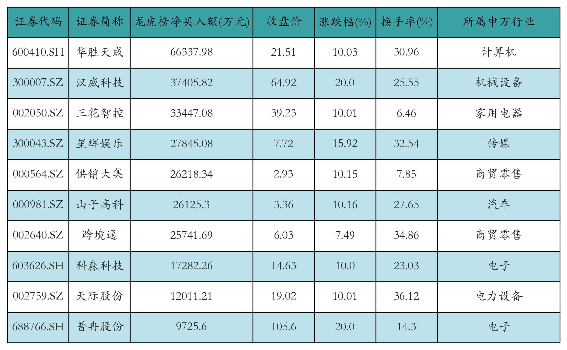 昨日龙虎榜营业部净买入额前10详情见下表: