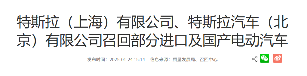 同样在今年1月24日,特斯拉也向市场监管总局备案召回计划,分两批召回: