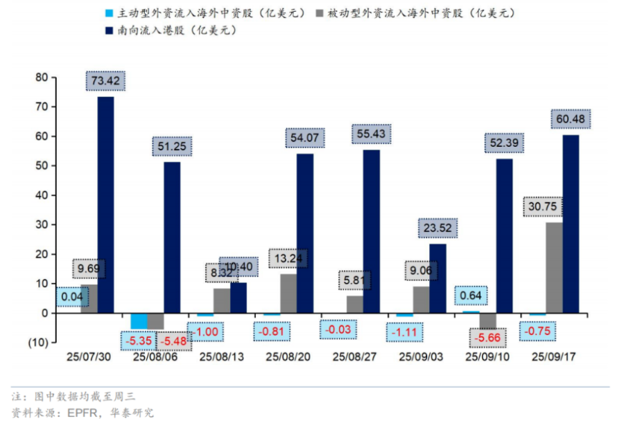 内资方面,据证券时报,上周(9月15日至19日)南向资金合计成交净流入368.51亿港元,已连续18周净流入。
