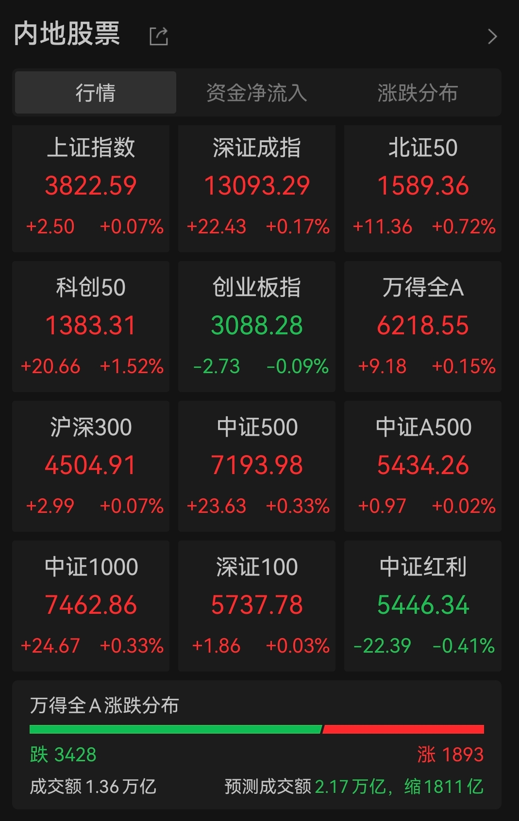 9月22日,市场早盘缩量震荡,创业板指一度跌逾1%。截至早盘收盘,沪指涨0.07%,深成指涨0.17%,创业板指跌0.09%。沪深两市半日成交额1.34万亿,较上个交易日缩量1511亿。