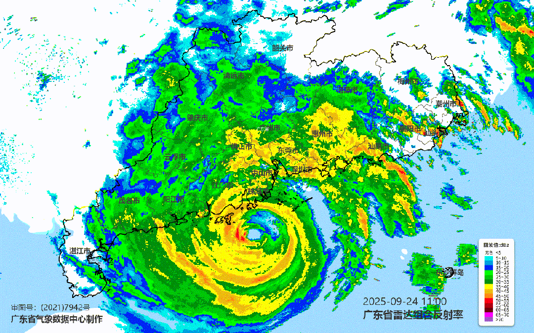 根据广东发布,截至9月24日14时,台风“桦加沙”位于距离阳江市东偏南方向约95公里的海上,强度已降至强台风级最大风力15级(50米/秒),预计“桦加沙”将以每小时20~25公里的速度向偏西方向移动,将于24日下午到夜间在台山到湛江之间沿海登陆。