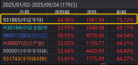 数据显示,截至9月24日,半导体设备ETF(561980)标的指数年内累计上涨64.36%,居同期A股主流半导体主题指数前列。
