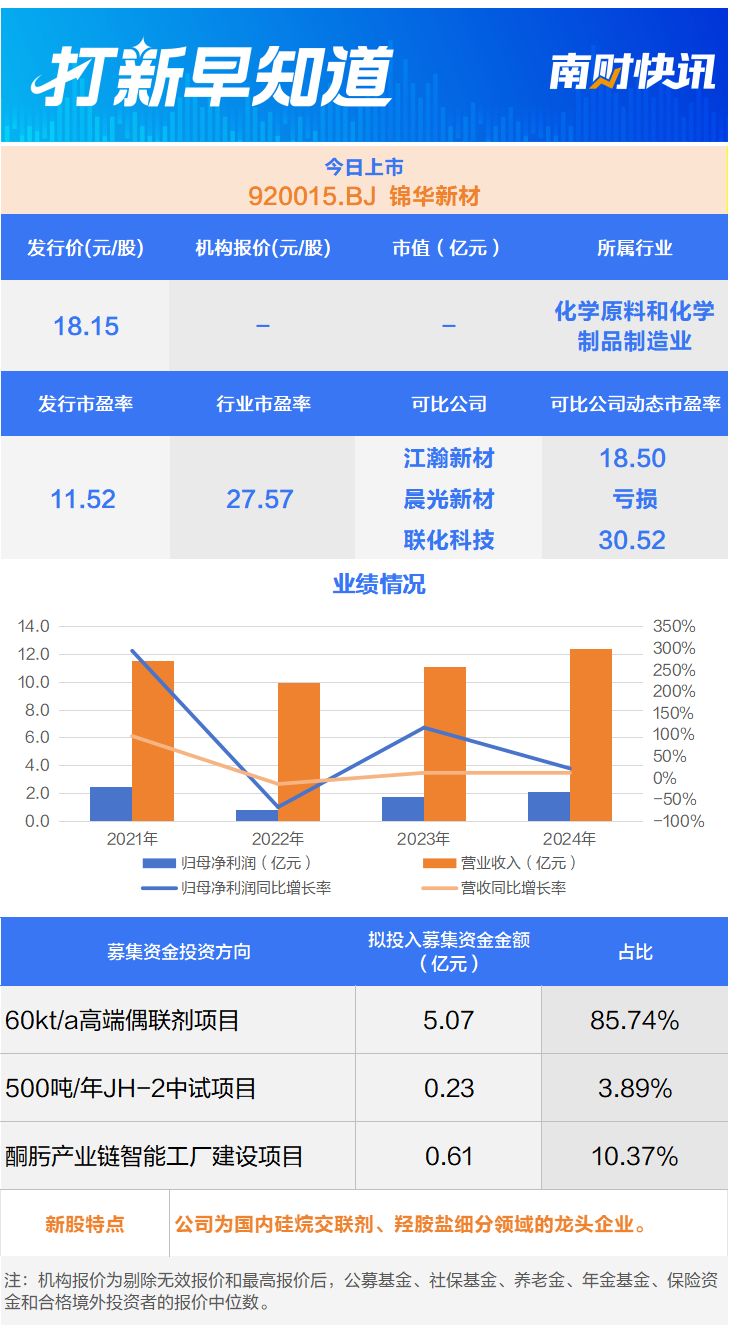 锦华新材提醒,若公司部分产品部分下游行业长期处于下行周期或底部区域,将可能导致公司相关产品整体市场需求下降,进而导致公司经营业绩下滑。