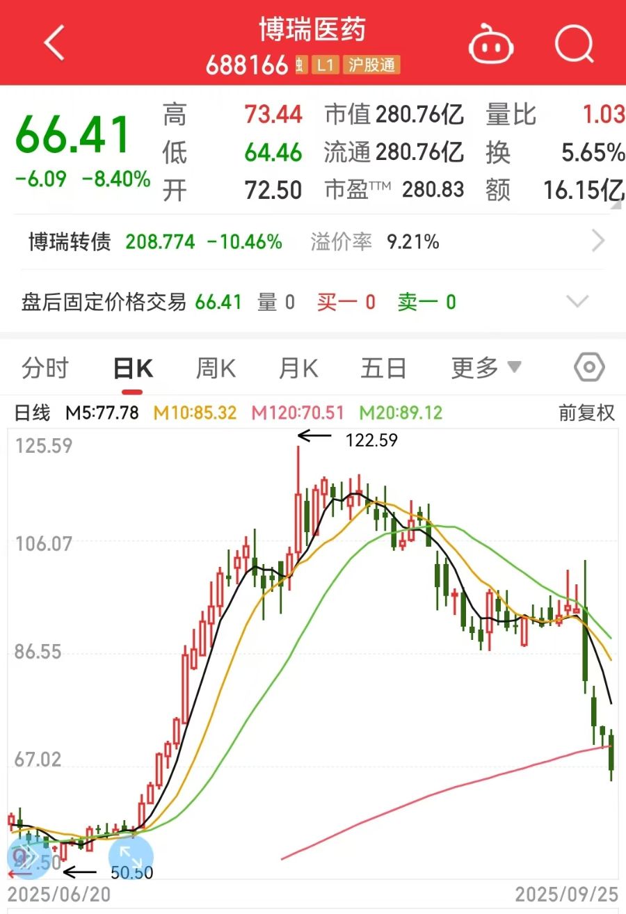 一场由辉瑞战略并购引发的行业地震,正将科创板创新药企业博瑞医药(688166.SH)推向风口浪尖。9月22日至9月25日,公司股价连续下挫,累计跌幅达30%,市值蒸发超百亿元,9月25日收盘价66.41元,动态市盈率仍高达817倍,远超行业平均31.43倍水平。分析认为,这场非理性抛售背后,折射出资本市场对GLP-1减肥药赛道估值逻辑的深刻重构。