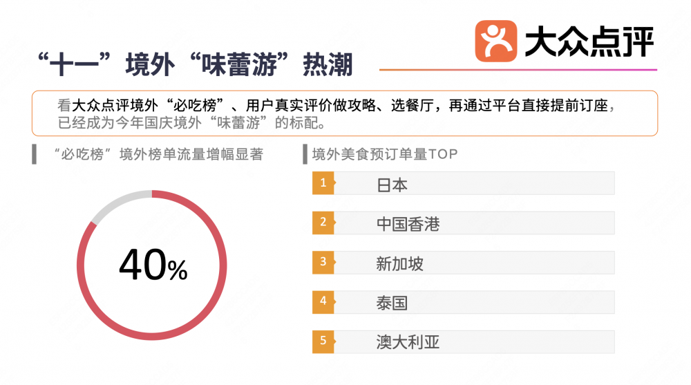 ▲看榜单、真评价做国庆境外“味蕾游”攻略,“必吃榜”境外榜单流量增幅超40%。(图源:大众点评)