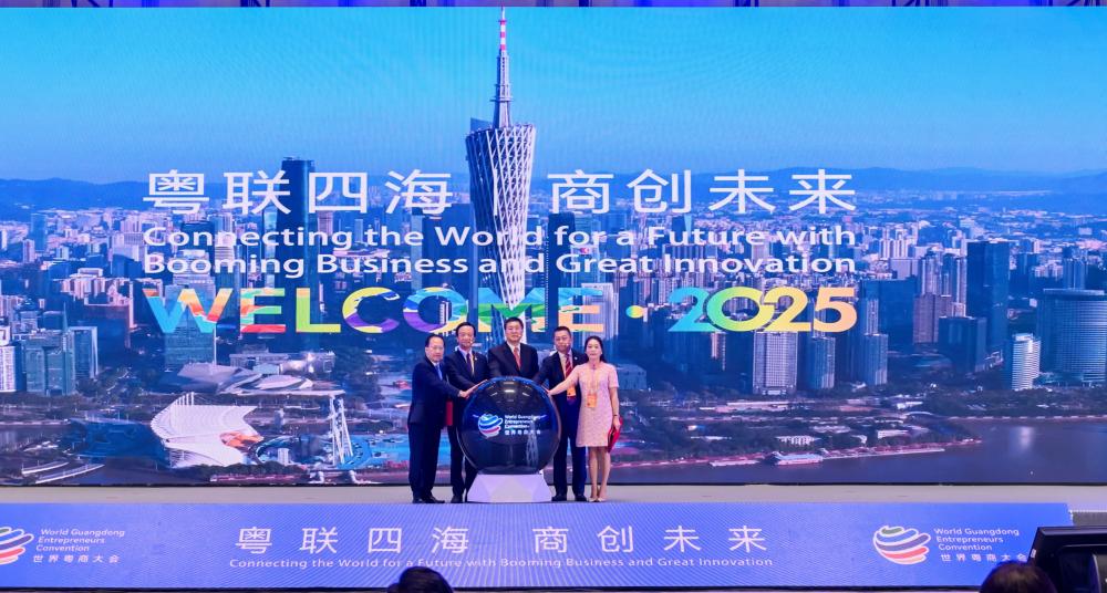9月29日上午,在以“粤联四海 商创未来”为主题的2025世界粤商大会上,五位粤商代表分别用普通话、粤语、闽南语朗诵《全球粤商合作倡议》,倡议全球粤商在深化开放合作中传承粤商精神,在持续健康发展中凝聚粤商力量,在建设一流湾区中作出粤商贡献,在助力走在前列中彰显粤商担当。
