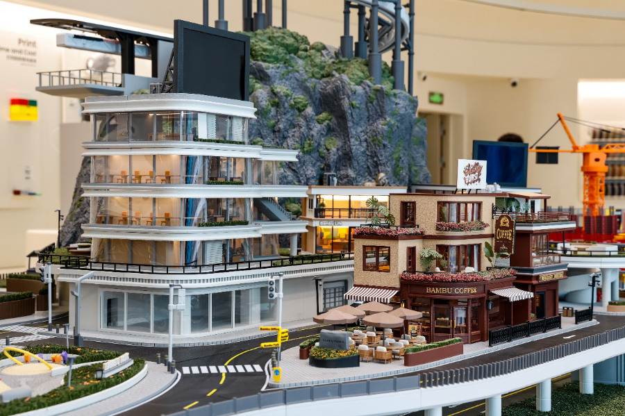 其二是拓竹全球首家3D打印旗舰店,可体验3D打印沙盘、由28台3D打印机组装而成的巨型培养皿、精心布置的“胶佬空间”和儿童书房、具备可编程功能Cyber Brick的3D打印火车等。