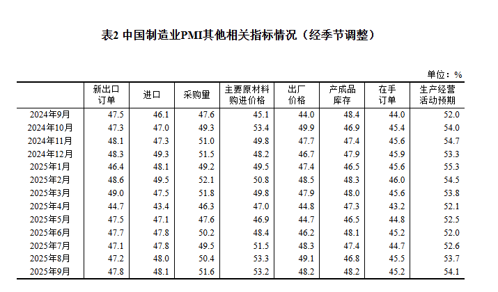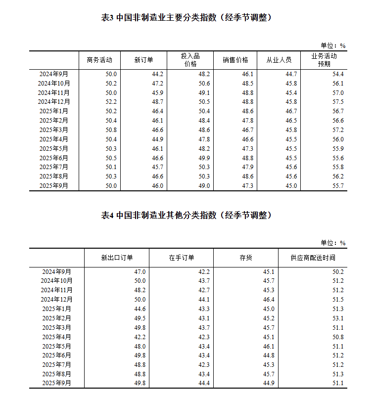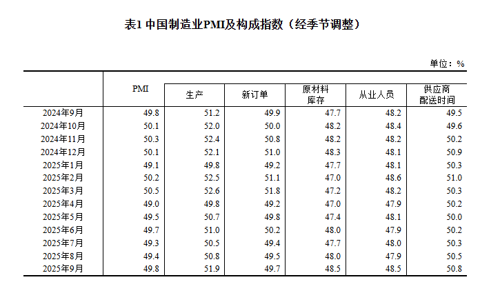 2025年9月中国采购经理指数运行情况
