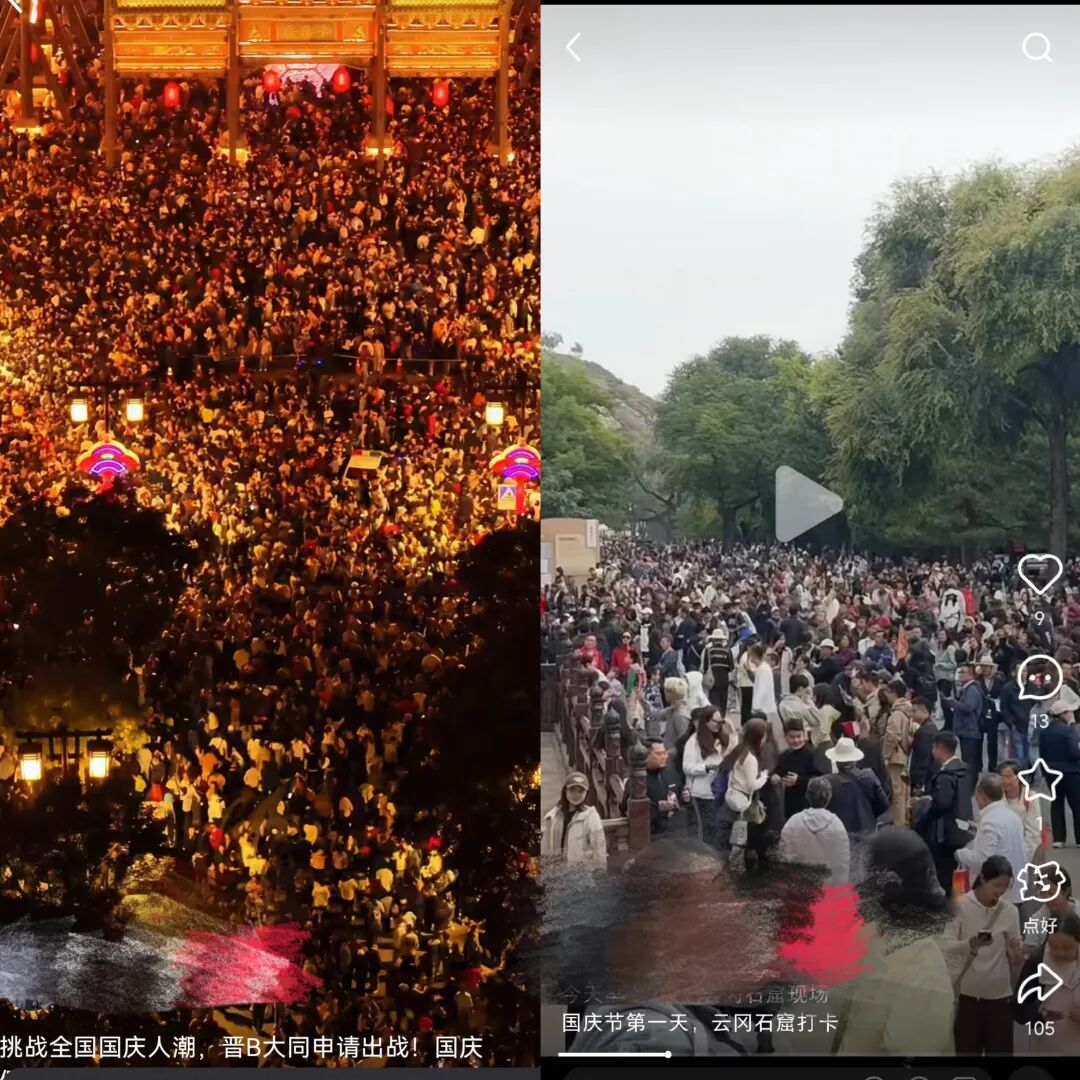 这个国庆黄金周,山西大同正以“挤到看不见尽头的人流”的热搜火爆全网。