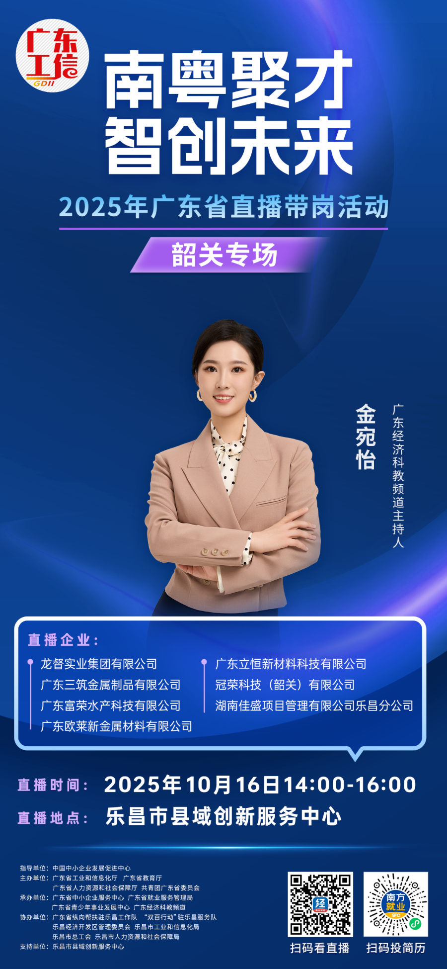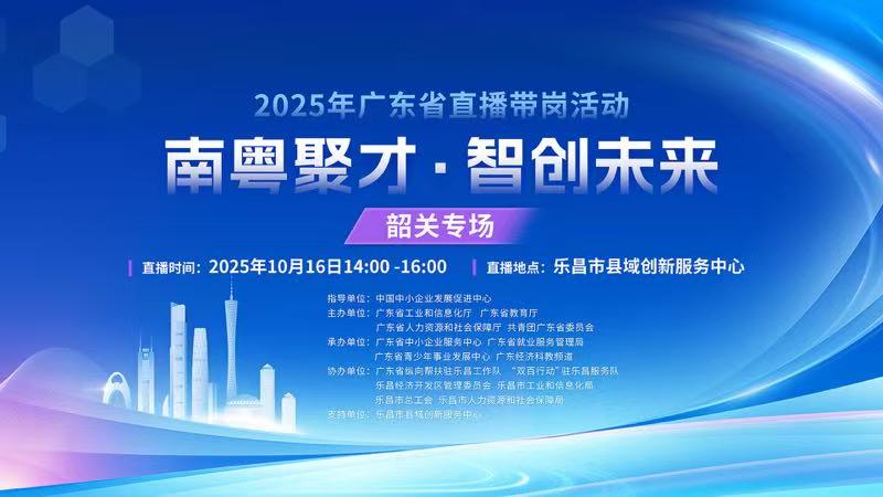 2025年广东省直播带岗活动将在2025年7月-12月开展40场线上招聘会。本次活动由中国中小企业发展促进中心指导,广东省工业和信息化厅、广东省教育厅、广东省人力资源和社会保障厅、共青团广东省委员会联合主办,广东省中小企业服务中心、广东省就业服务管理局、广东省青少年事业发展中心、广东经济科教频道共同承办。