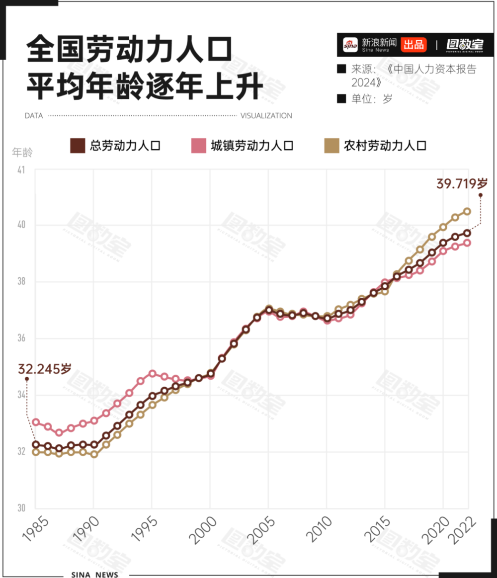 几年过去,深度老龄化不断逼近,劳动力人口平均年龄,或已经突破40岁大关。