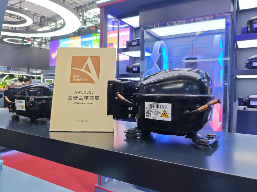 展位上,万宝压缩机作为冰箱制冷的核心部件被摆放在了最显眼的位置。据现场工作人员介绍,此次参展的产品均为绿色环保高效产品,其中VSN140深冷压缩机获2024年艾普兰核芯奖,技术经鉴定达国际领先水平。