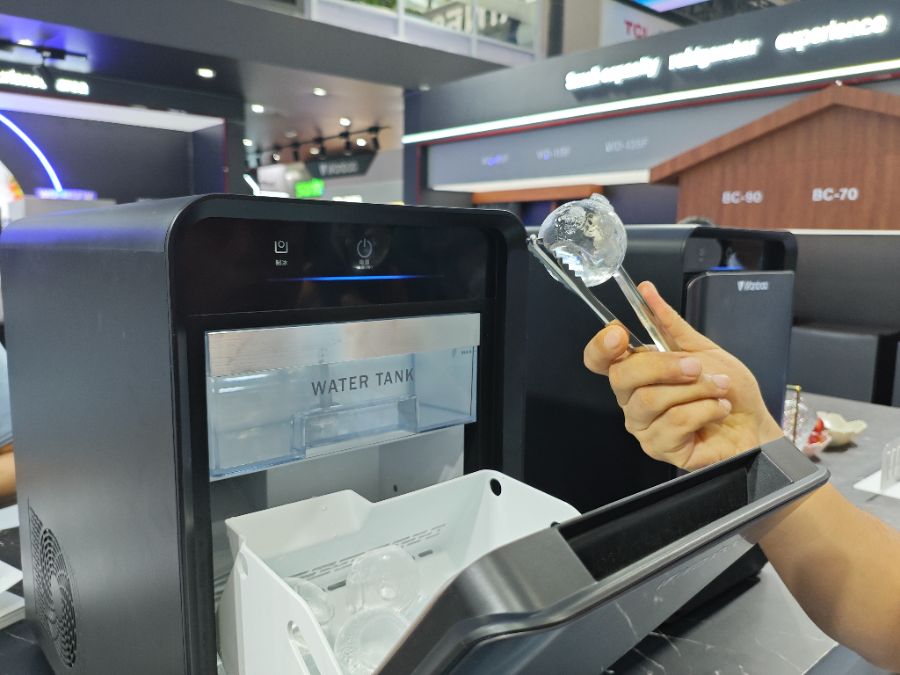 “我们调研发现大家在喝咖啡、调酒时喜欢用冰球,但能做这种又圆又透的冰球的产品很少。我们经过三年多研发推出这款冰球机,化冰速度只有普通冰块的1/5。” 据介绍,这款机器在展会上已收到欧洲、东南亚客商的合作意向。