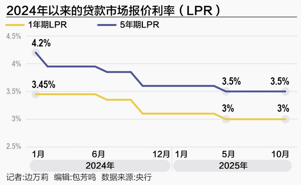 10月LPR报价依然不变,维持了今年5月以来的利率水平。中国人民银行授权全国银行间同业拆借中心公布,2025年10月20日贷款市场报价利率(LPR)为:1年期LPR为3.0%,5年期以上LPR为3.5%。以上LPR在下一次发布LPR之前有效。