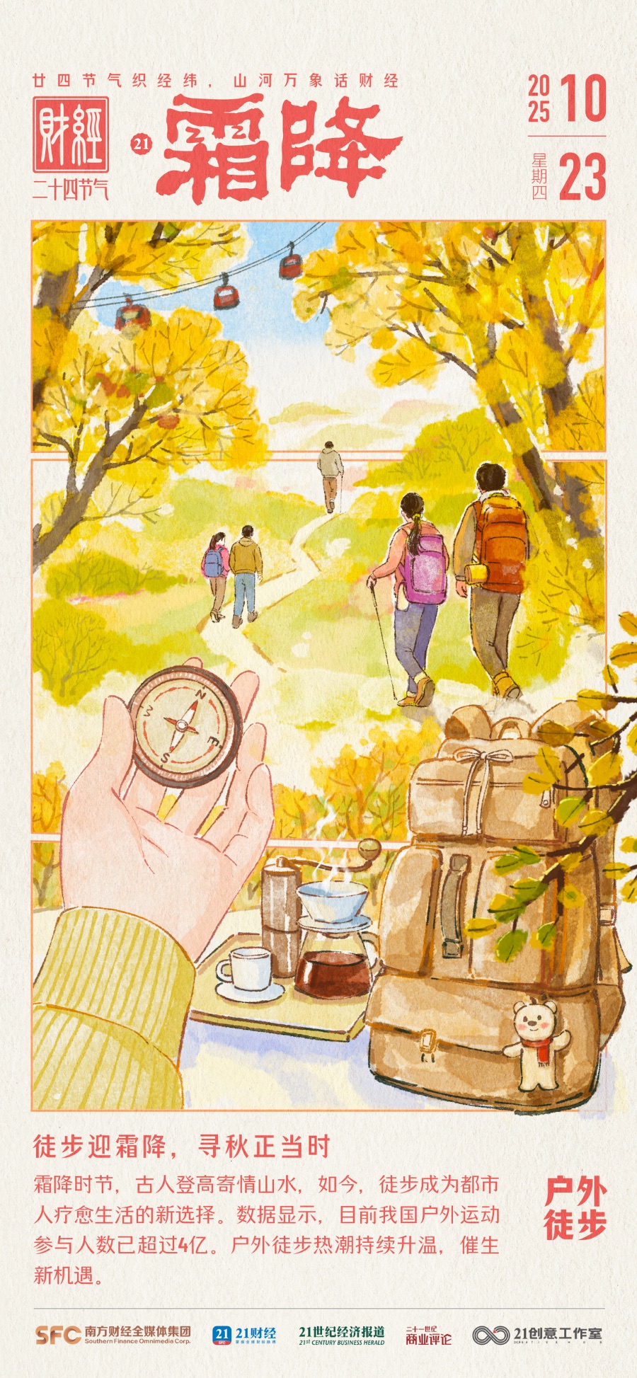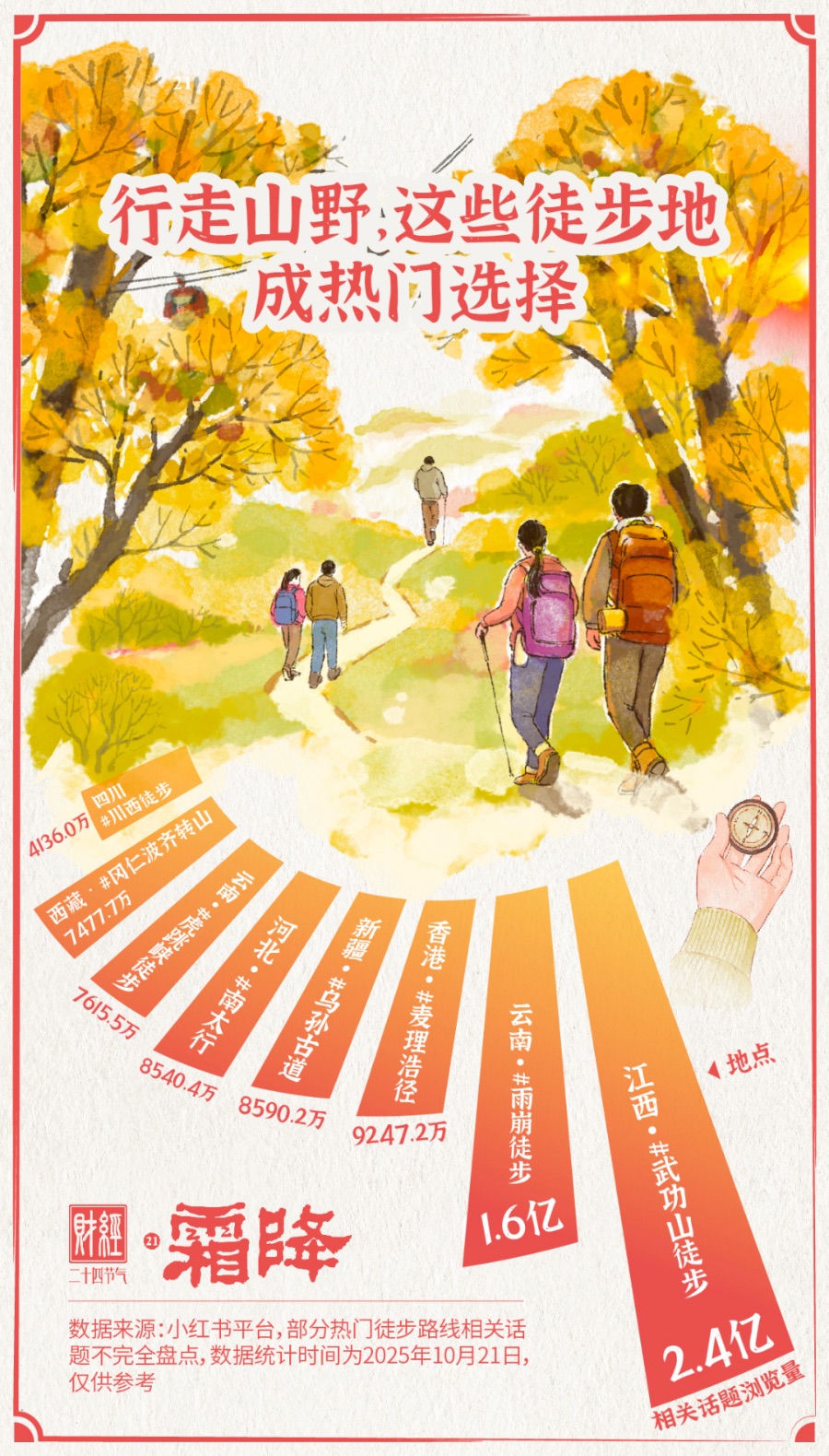 霜降时节,徒步登高的脚步不仅丈量了山野,也带动着户外经济节节攀“高”。我们也期待着徒步市场在规范引导下良性发展,让脚步走得更远,风景更长。