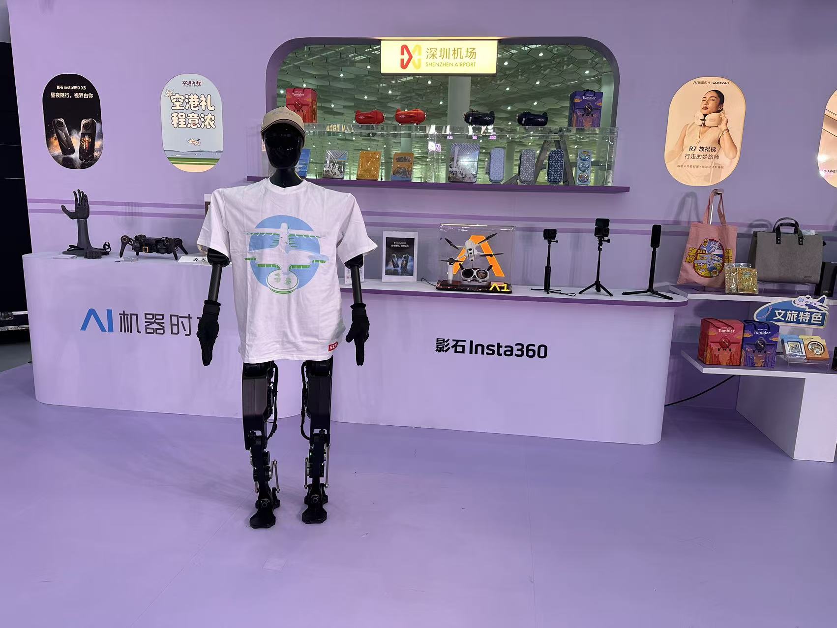 “AI 机器时代” 在深圳机场开设了人工智能体验馆,馆内出售数千种高科技产品,其中超过 80% 的产品由深圳本地企业研发制造,包括智能健康戒指、智能办公本、开放式 AI 耳机、全地形飞行相机等。