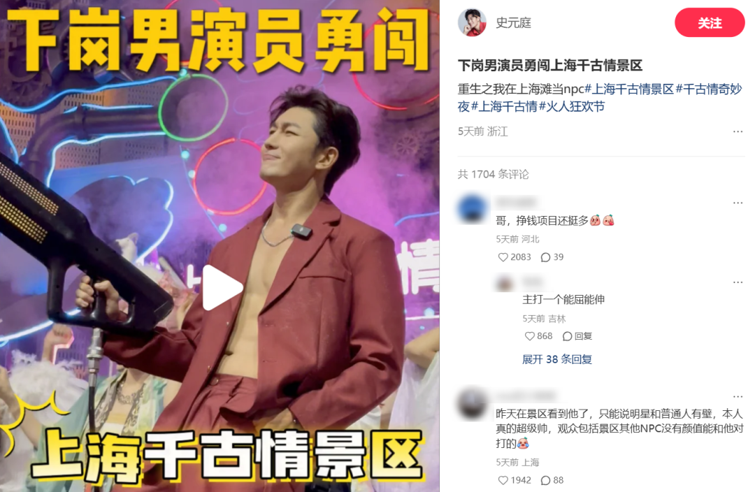 而对明星呢,去景区做NPC也成了影视行业“寒冬”之下维持生计的另一种新选择。