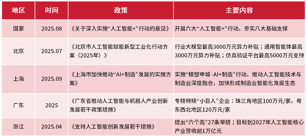 北京、上海、广东等地方政府也积极推进人工智能相关政策,为后续“人工智能+”细化落地做铺垫。中央与地方的联动,为人工智能企业提供了丰富的应用场景和制度保障。