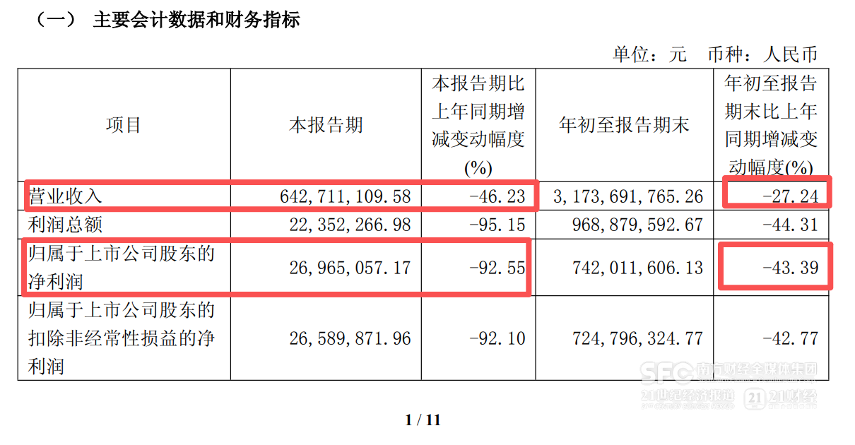 21世纪经济报道记者注意到,这是截至28日下午披露三季报的白酒上市公司中,跌幅最大的一家。