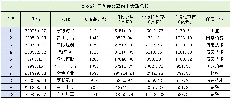 公募基金头号重仓股出炉