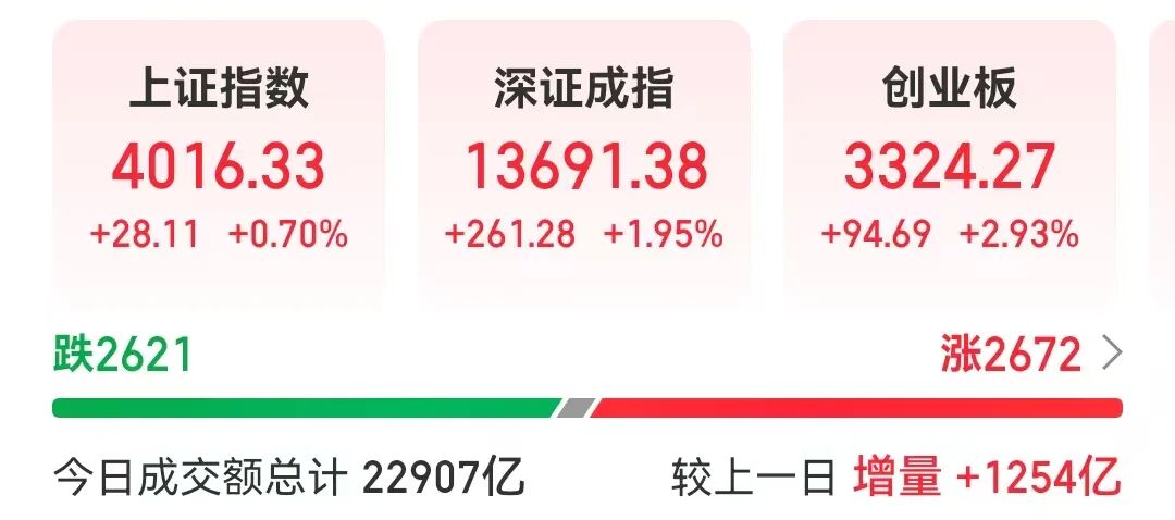市场全天震荡走强,沪指再度站上4000点,创业板指涨近3%。