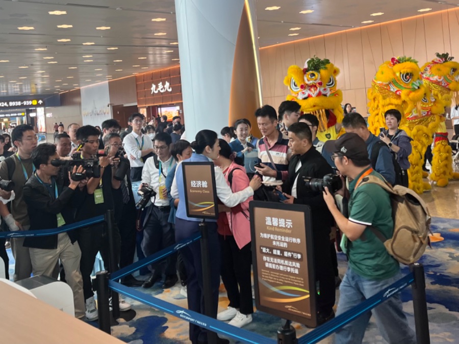 行业主管部门、东方航空、上海航空、中国联合航空、吉祥航空、奥凯航空等首批入驻航司代表,机场公安局等驻楼单位,以及省机场集团和白云机场股份公司的领导与员工代表齐聚现场,共同见证这一重要时刻。活动现场,广州交响乐团奏响激昂乐章,以及刚劲有力的舞狮表演,传统与现代交融的氛围让在场旅客纷纷驻足鼓掌。