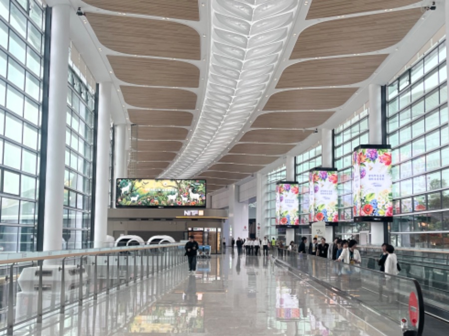 旅客服务设备更充足,设有托运柜台199个(含全自助、可转换、全人工)、自助值机设备60台、自助托运设备59台(57台人工/自助可转换+2台纯自助),登机桥活动端87座,航显屏886块、广播终端7193个。