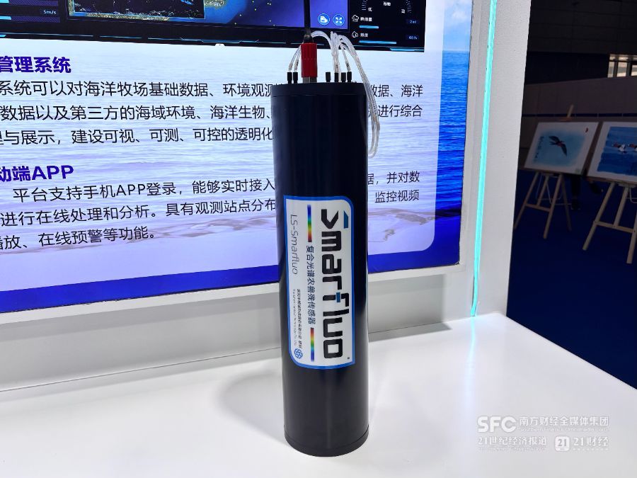 如在渔业领域,若养殖不当,鱼体可能存在氧氟沙星、诺氟沙星等药物残留,此前以活体检测为主。“这款复合光谱农兽残传感器直接检测水体,实现连续、实时、定点分析。如果水体农兽残超标,水中鱼类肯定也超标,我们可以从源头上控制。”深圳市朗诚科技股份有限公司总裁助理刘昌伟说。