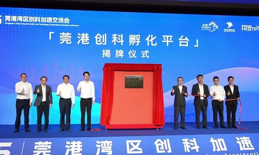 同时,“莞港创科孵化平台”在会上正式揭牌。该平台由东莞科技创新投资集团与香港科技园共同发起成立,将挂牌于香港伟业中心,旨在促进莞港跨境初创企业成长,为香港科技创业者在东莞落地发展提供资源支持,并为东莞初创企业“出海”搭建平台。