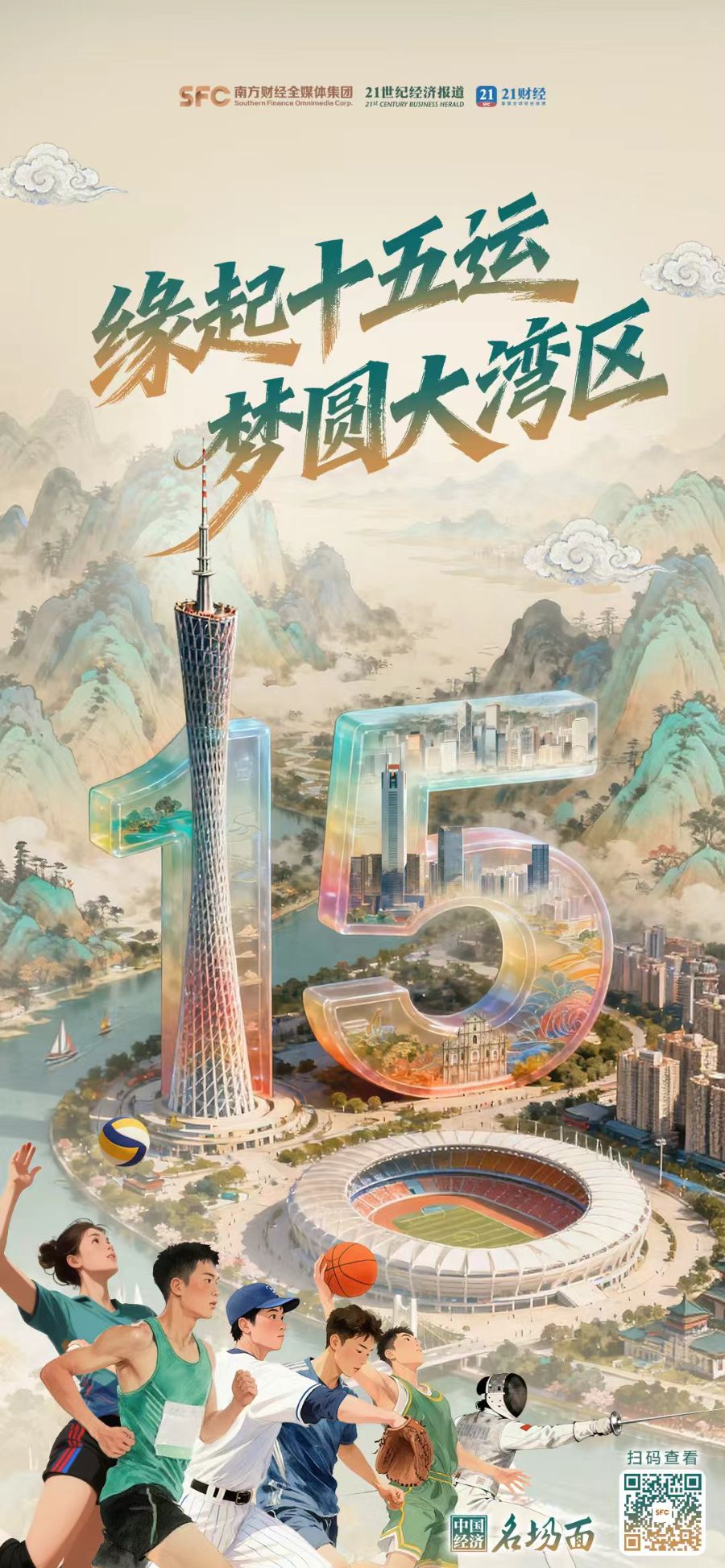 第十五届全国运动会将于11月9日在广州开幕,跨过山海相连的赛道,粤港澳大湾区让奔流的体育具象化了。全民迎全运,让我们以体育为笔,山水为墨,共绘一个活力无限的粤港澳大湾区!