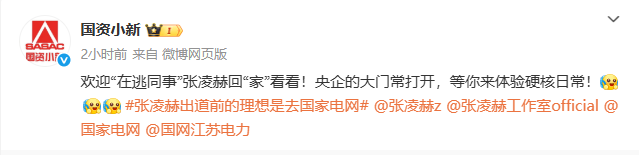 国务院国资委官方新闻平台“国资小新”也下场邀请张凌赫。