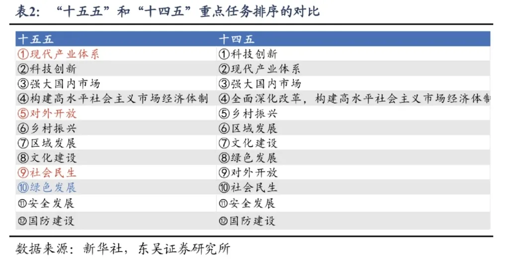 对外开放提前到第五位,而在“十四五”规划中,排在第九位;