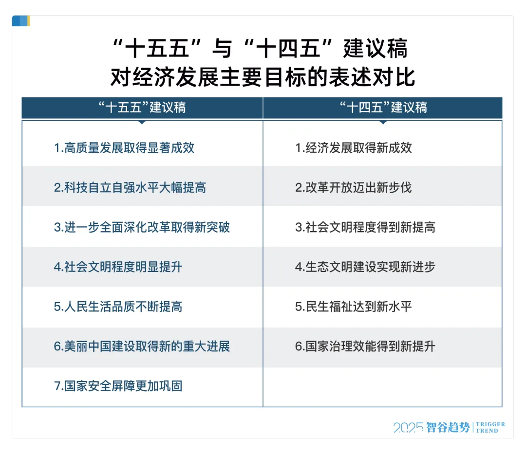 从“十五五”规划建议稿来看,我们的经济发展主要目标,有两个突出的新重点:
