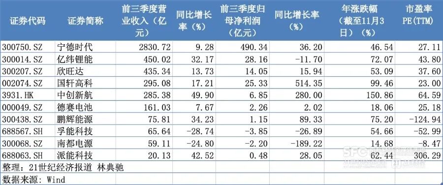 从最新发布的前三季度财报来看,21世纪经济报道记者选取的10家代表性的锂电企业中,7家实现营收正增长,有7家实现归母净利润正增长。今年的三季度是诸多电池企业的业绩拐点,产能利用率飙升,“一芯难求”的局面短期难以改善。