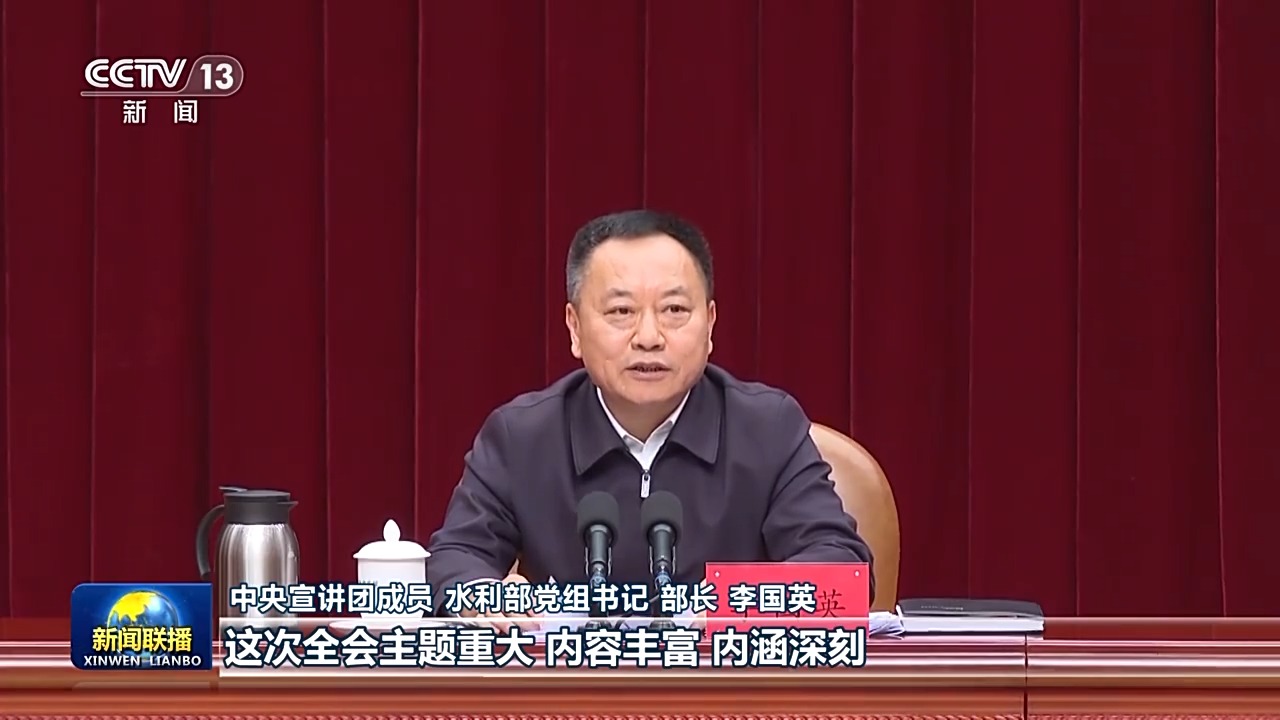 中央宣讲团成员 水利部党组书记 部长 李国英:这次全会主题重大、内容丰富、内涵深刻,全会阐明的指导思想、重大原则、目标要求、战略任务和重大举措,充分体现了习近平新时代中国特色社会主义思想,贯通着这一思想的立场、观点、方法和实践要求。
