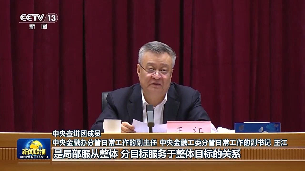 中央宣讲团成员 中央金融办分管日常工作的副主任 中央金融工委分管日常工作的副书记 王江:从金融工作来看,实现社会主义现代化是由各领域分目标耦合而形成的整体目标,建设金融强国与全面建成社会主义现代化强国之间是局部服从整体、分目标服务于整体目标的关系。“十五五”时期,也是推动金融高质量发展、加快建设金融强国的关键时期。
