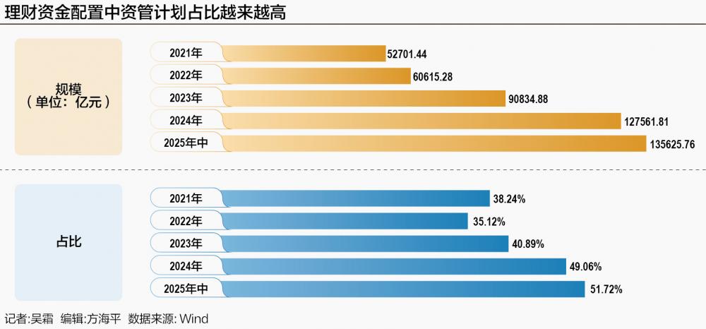 理财子公司对于通道的依赖确实是有迹可循的,中国理财网数据显示,截至2025年上半年末,理财资产配置中的委外投资(委外投资—协议方式+资管产品+基金)占比58.5%,相较2022年末的39.5%上升19个百分点,而直接投资的固定收益类资产占比则呈持续下降趋势。这其中有大量信托参与的身影。