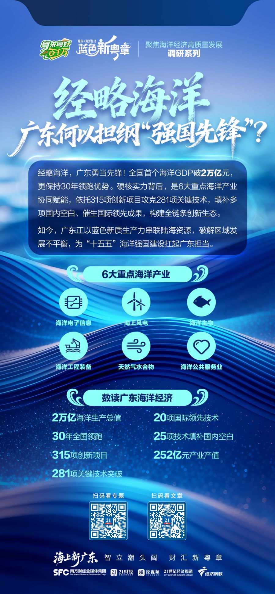 作为我国大陆海岸线最长的省份,广东拥有全国第二的海域面积和第三的海岛数量,海洋资源禀赋突出。2024年,广东海洋生产总值突破2万亿元,成为全国首个跨越这一门槛的省份,连续30年领跑全国。2025年6月召开的全省海洋经济工作会议进一步绘就海洋经济发展新蓝图,明确提出将积极培育海洋新能源、海工装备等新兴和未来产业,打造现代海洋企业矩阵,持续巩固海洋产业优势。