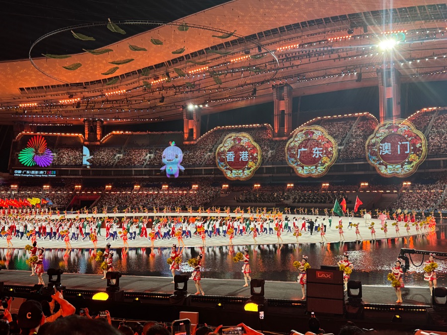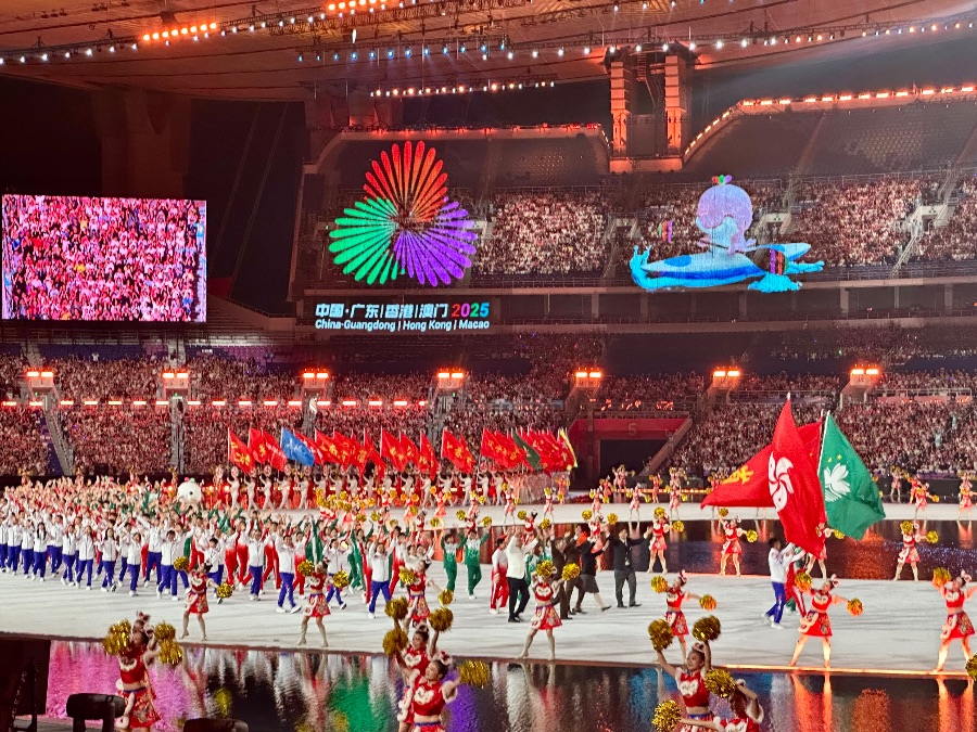 在运动员入场环节,粤港澳三地代表团首次联合,组成一个方阵亮相入场,体现粤港澳体育健儿携手弘扬中华体育精神。